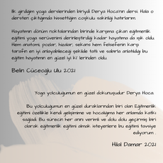 Eğitim süresince düzenli pratiklerinizi desteklemek için seçtiğiniz Derya Çakmak online gruplarından bir tanesine 10 derslik ücretsiz katılım veriyoruz.
